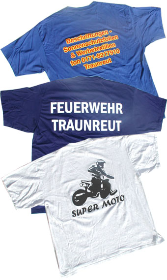 Für die Beschriftung stehen Flock- und Flexfolien (glatt/glänzend) zur Verfügung. Verarbeitung auch problemlos mehrfarbig. Dauerhaft und waschbar.